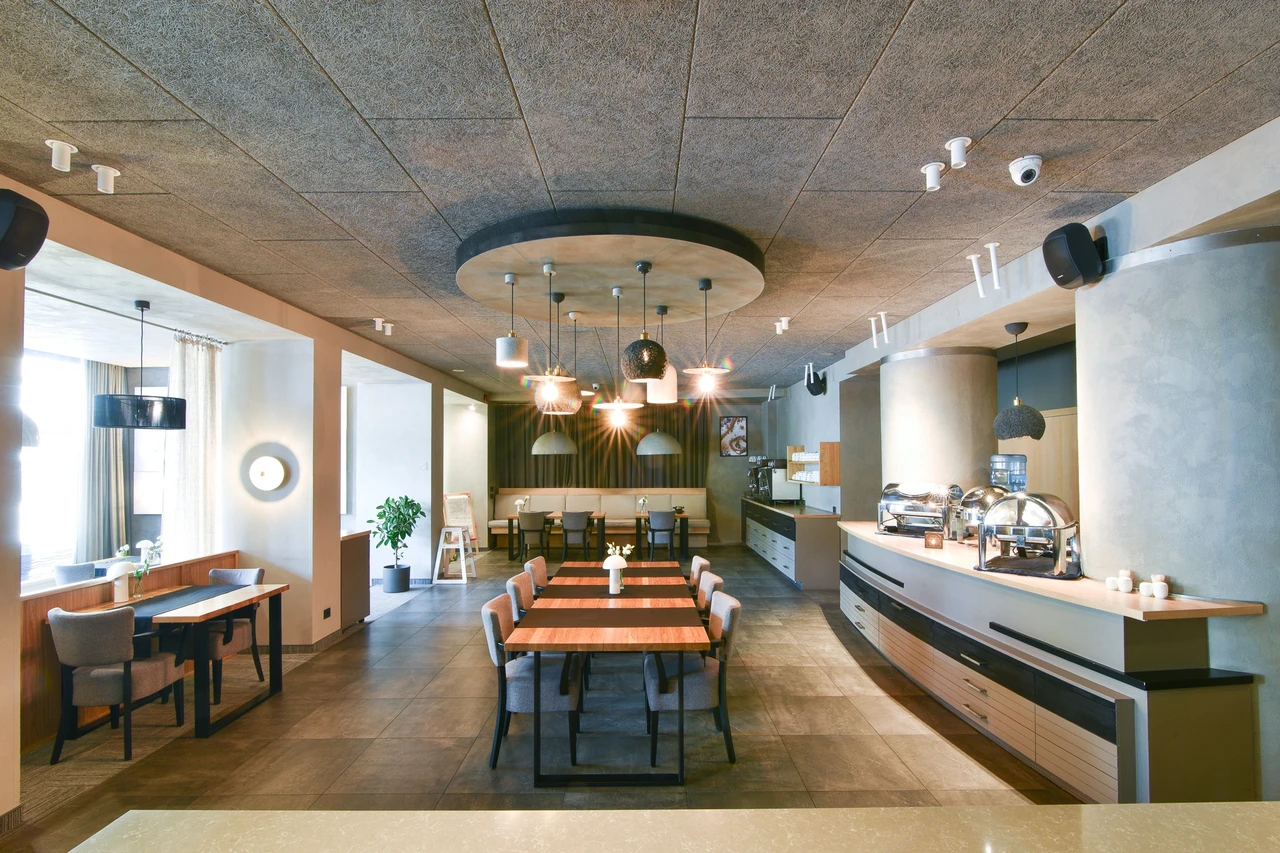 Akustiskās dizaina plātnes biroja sienu un griestu apdarei